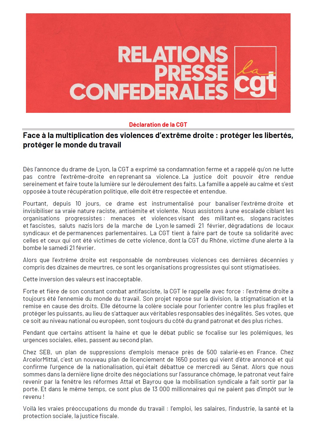 Face à la multiplication des violences d’extrême droite : protéger les libertés, protéger le monde du travail