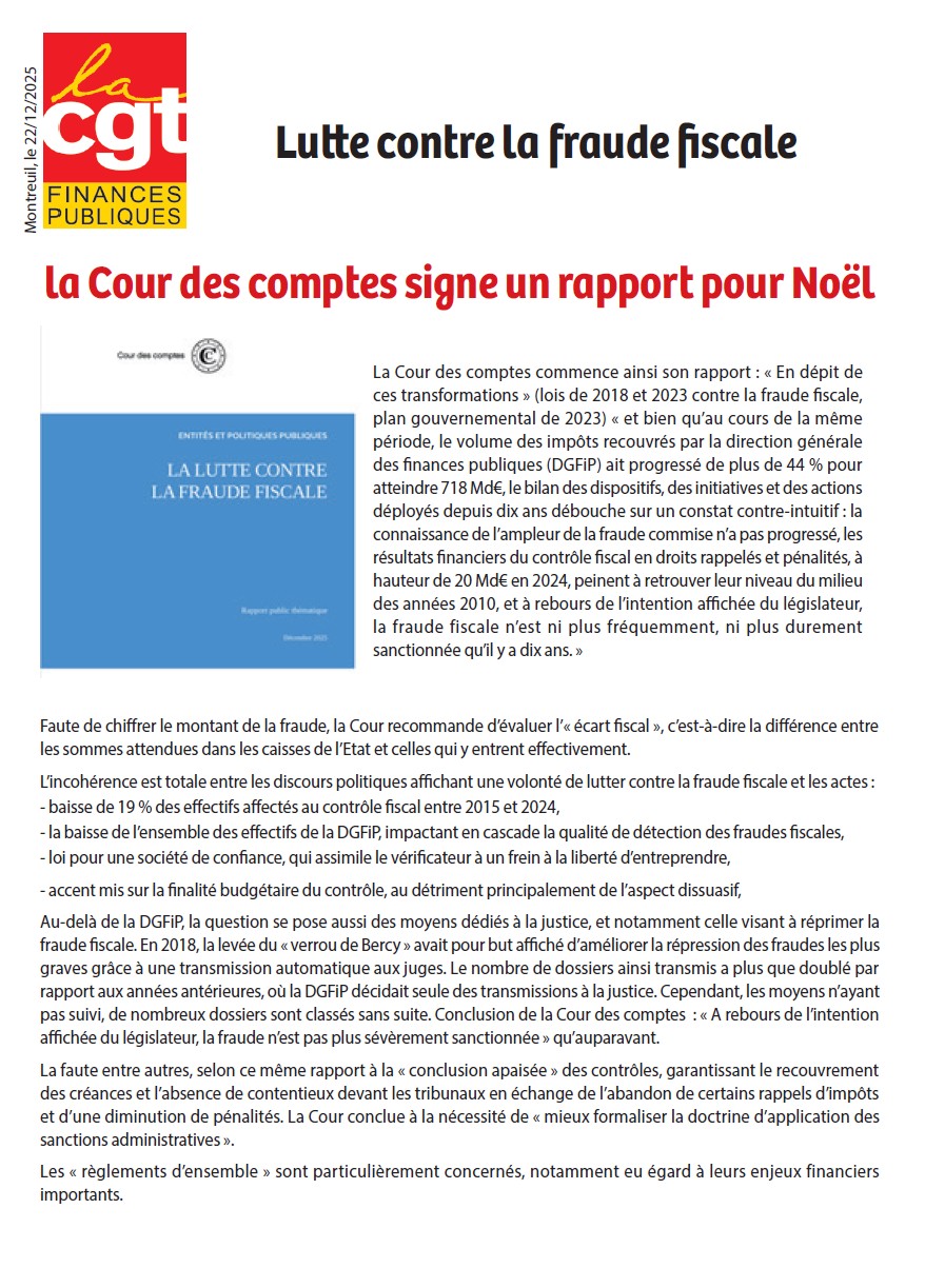 Lutte contre la fraude fiscale : la Cour des Comptes signe un rapport pour Noël